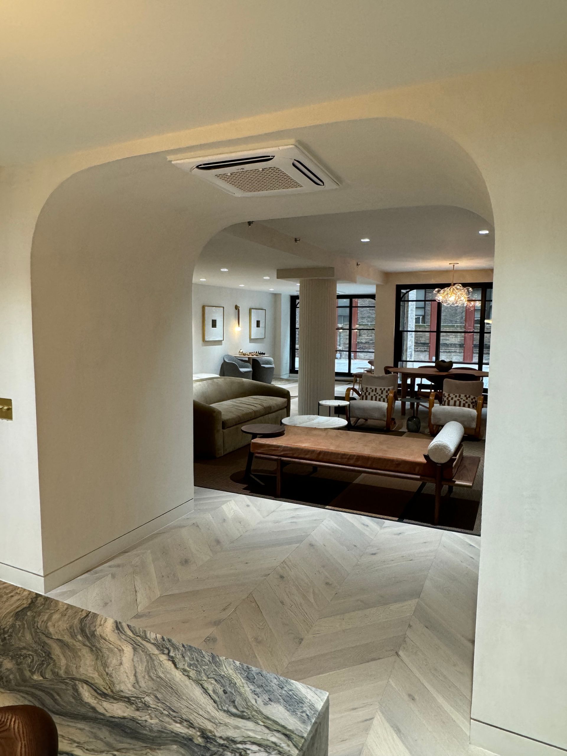 - Ceiling-mount (4) 2-ton ceiling cassette air handlers within the apartment area.